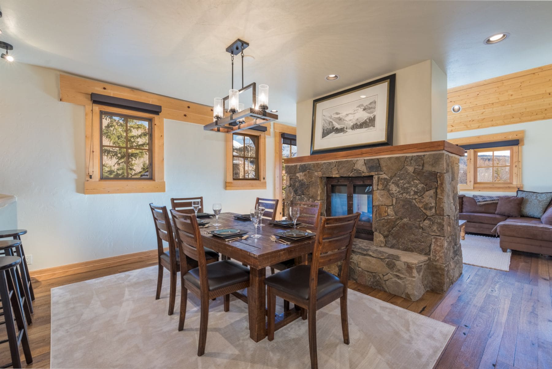 Located in Mountain Village and just minutes from the free Gondola to Telluride, this beautifully designed three-bedroom tri-level log cabin offers a cozy mountain escape with all of the convenient amenities the Village has to offer.